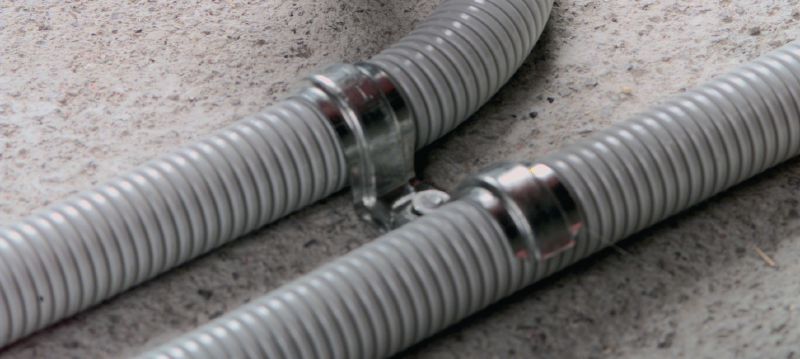- Fastening flexible and rigid electrical conduits, cables, water and heating pipes, injection hoses