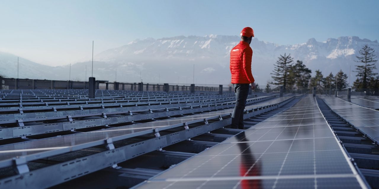 Hilti uses only green electricity at all its locations worldwide. Either through certified purchases or through own photovoltaic systems. The company's own green electricity generation is constantly being expanded through the addition of new photovoltaic capacities.