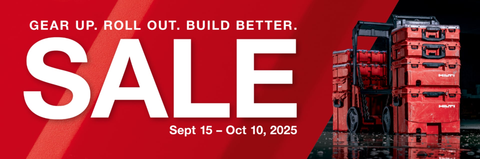 *Offers valid September 15 – October 10, 2025 through Hilti website, unless otherwise noted. Offer redemptions will be fulfilled via promo code through the Hilti online platform. Individual terms and conditions apply to each promo code. Prices do not include tax or shipping. Hilti may cancel offers at any time without notice. Offers only apply to purchases direct from Hilti and only available while supplies last. Offers with spend thresholds cannot be combined or stacked. Offers are not available to Authorized Distributors, resellers, or national rental customers. Rental customers should contact their Hilti representative regarding eligibility. Offers void where prohibited or restricted by law, regulation, or customer rules. Government accounts may participate if their procurement rules allow. Return of product which results in initial order falling below qualifying levels will result in promotional item being billed to purchaser at full value. Separate orders may not be combined to reach qualifying levels. Past orders do not qualify. Monthly charges require a Fleet account. See your Hilti representative for details. All sales final.